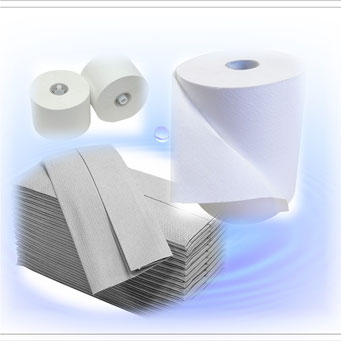 Bei uns finden Sie sämtliche Papiervarianten wie Rollenpapier, Falthandtuchpapier- und Endlosrollensysteme.